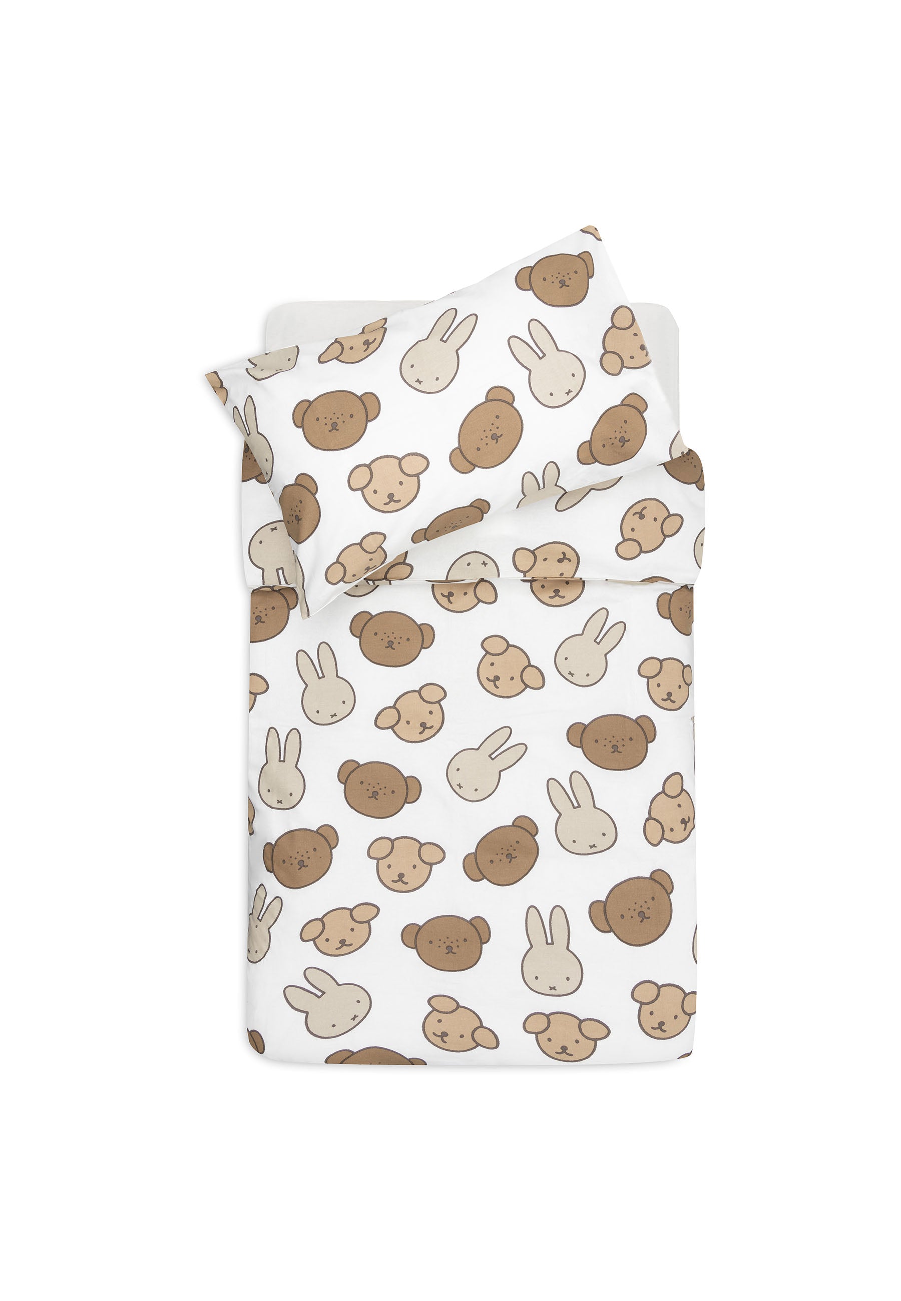 Dieses niedliche Bettwäscheset mit Kissenbezug bringt Gemütlichkeit ins Kinderzimmer. Der große Allover-Print zeigt Miffy und ihre Freunde auf einem ivoryfarbenen Hintergrund. Die Gesichter von Miffy und ihren Freunden sind in sanften Tönen wie Nougat und Biscuit gehalten, was dem Set eine ruhige und liebevolle Ausstrahlung verleiht. Erhältlich in 100x140cm – ideal für ein Kinder- oder Kleinkinderbett. Beide Seiten haben denselben Aufdruck, sodass du die Bettwäsche einfach wenden kannst!